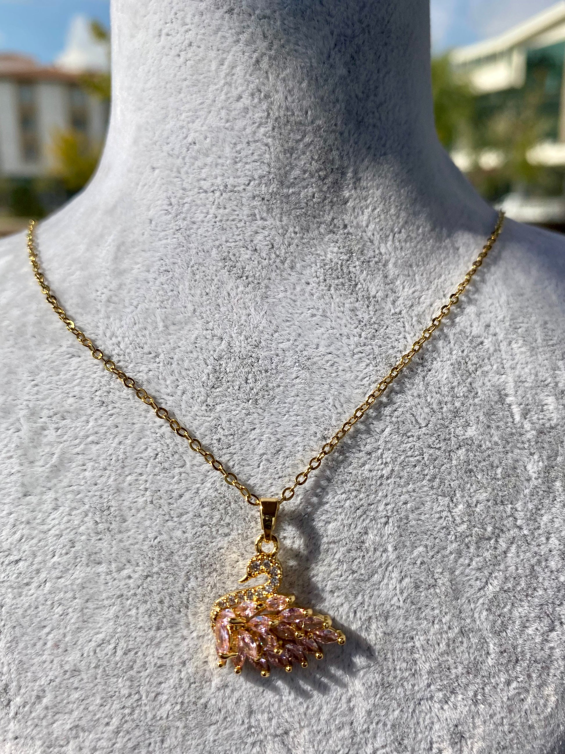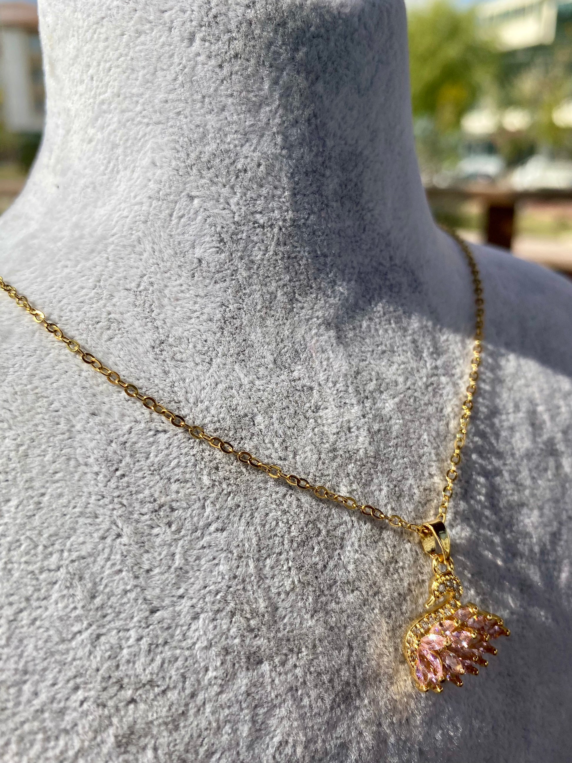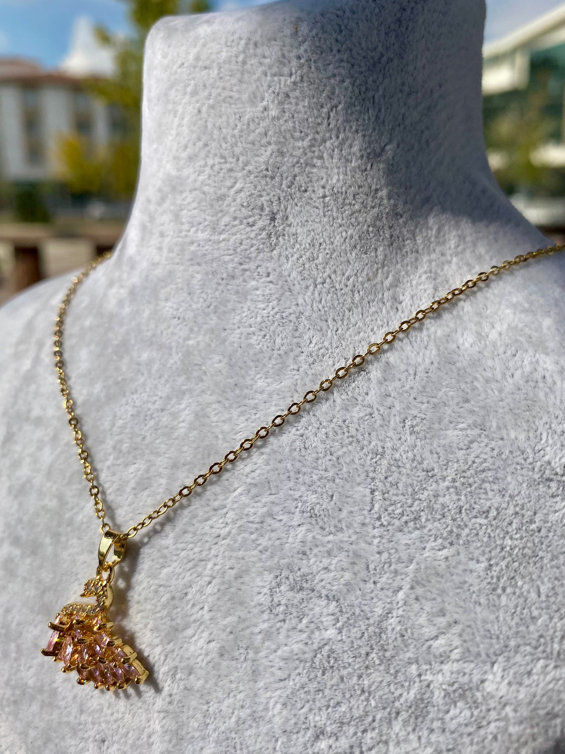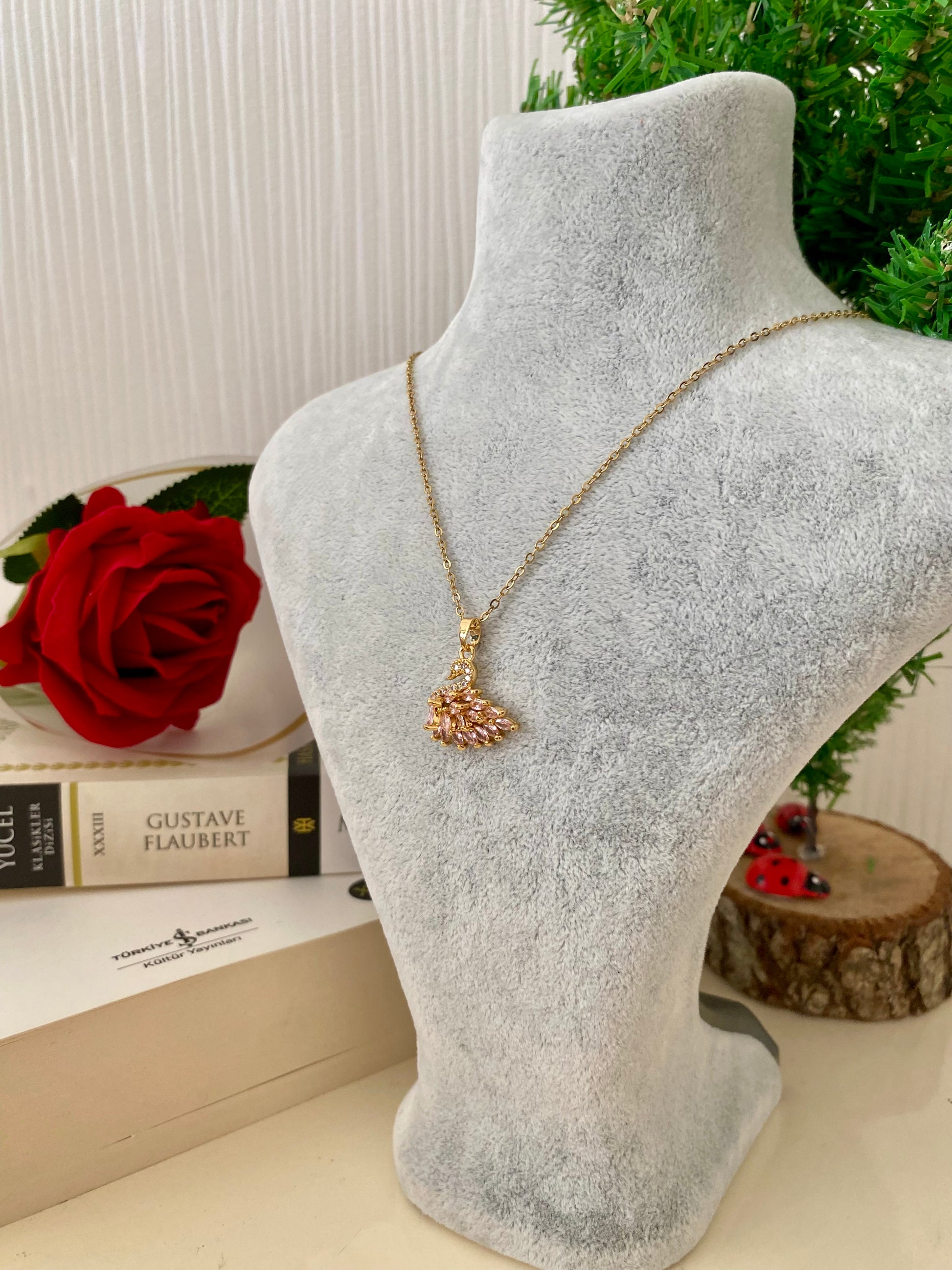 Çelik Pembe Kuğu Kolye