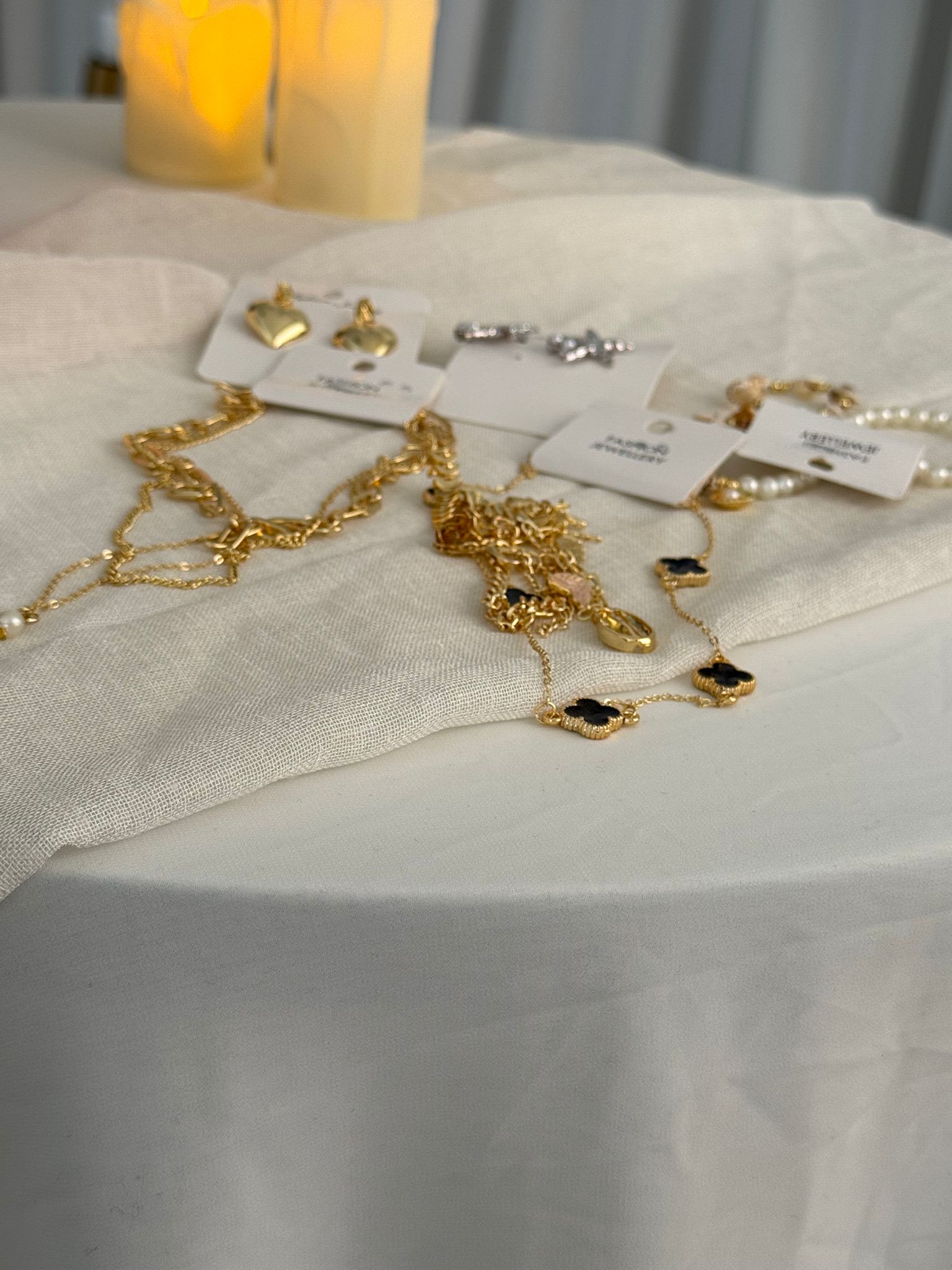 Özenle seçilmiş 7 adet takı parçası (kolye, küpe, bileklik ve daha fazlası)